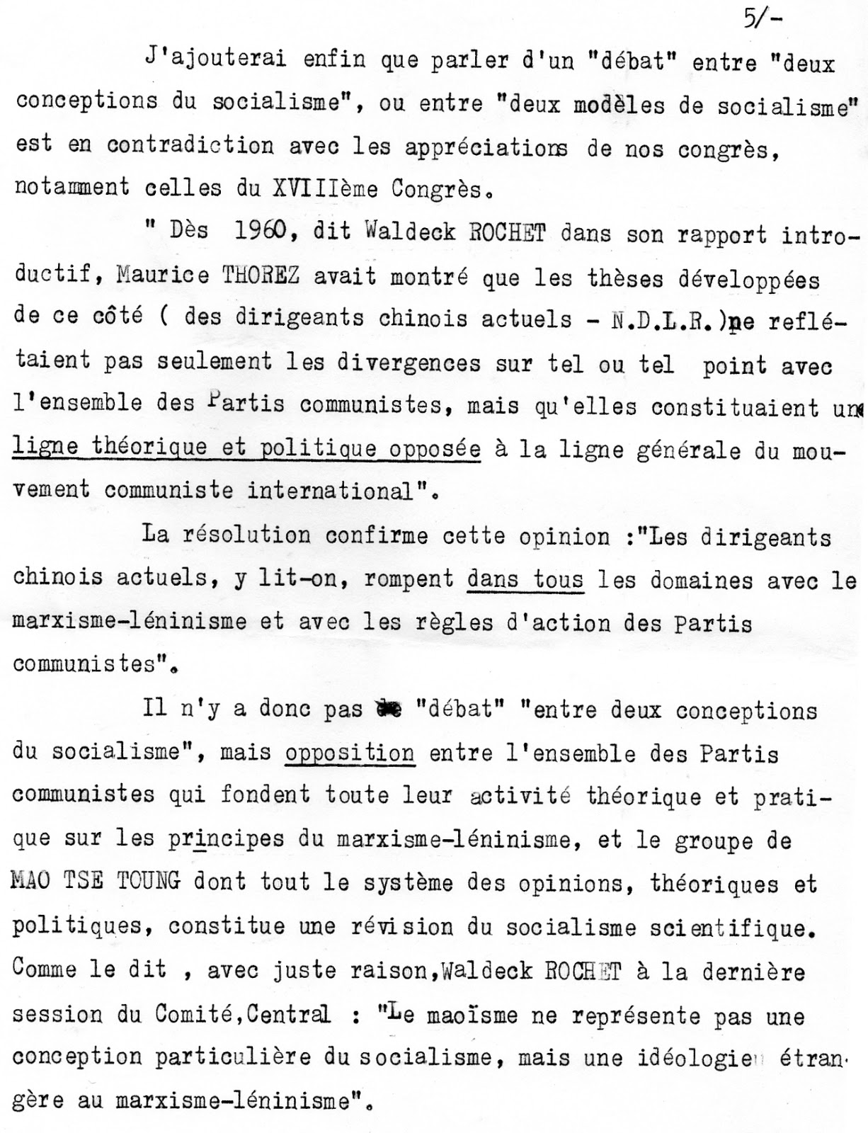 Traduit en tchèque, italien, serbe, portugais -Brésil-, allemand, hongrois, japonais), Roger GARAUDY se voit confimer qu'il a bien avec le "groupe Marchais", dont il dira un an plus tard qu'il sera le "fossoyeur" du PCF, des divergences de fond. Esprit d'ouverture et de dialogue contre langue de bois et orthodoxie néo-stalinienne.Léon FEIX, Jean KANAPA, Lucien SEVE ont déjà critiqué négativement son livre. Nous publions ici un article de Paul COURTIEU communiqué à Roger GARAUDY le 24 juillet 1967 avant sa publication annoncée dans l'hebdomadaire FRANCE NOUVELLE (voir la lettre jointe de Roland LEROY). Nous faisons précéder ce texte de l'introduction du livre incriminé que nous vous invitons bien entendu à lire dans son intégralité: vous pouvez par exemple l'acheter sur Price Minister, Amazone, Livrenpoche.INTRODUCTION DU LIVRE LE PROBLEME CHINOIS